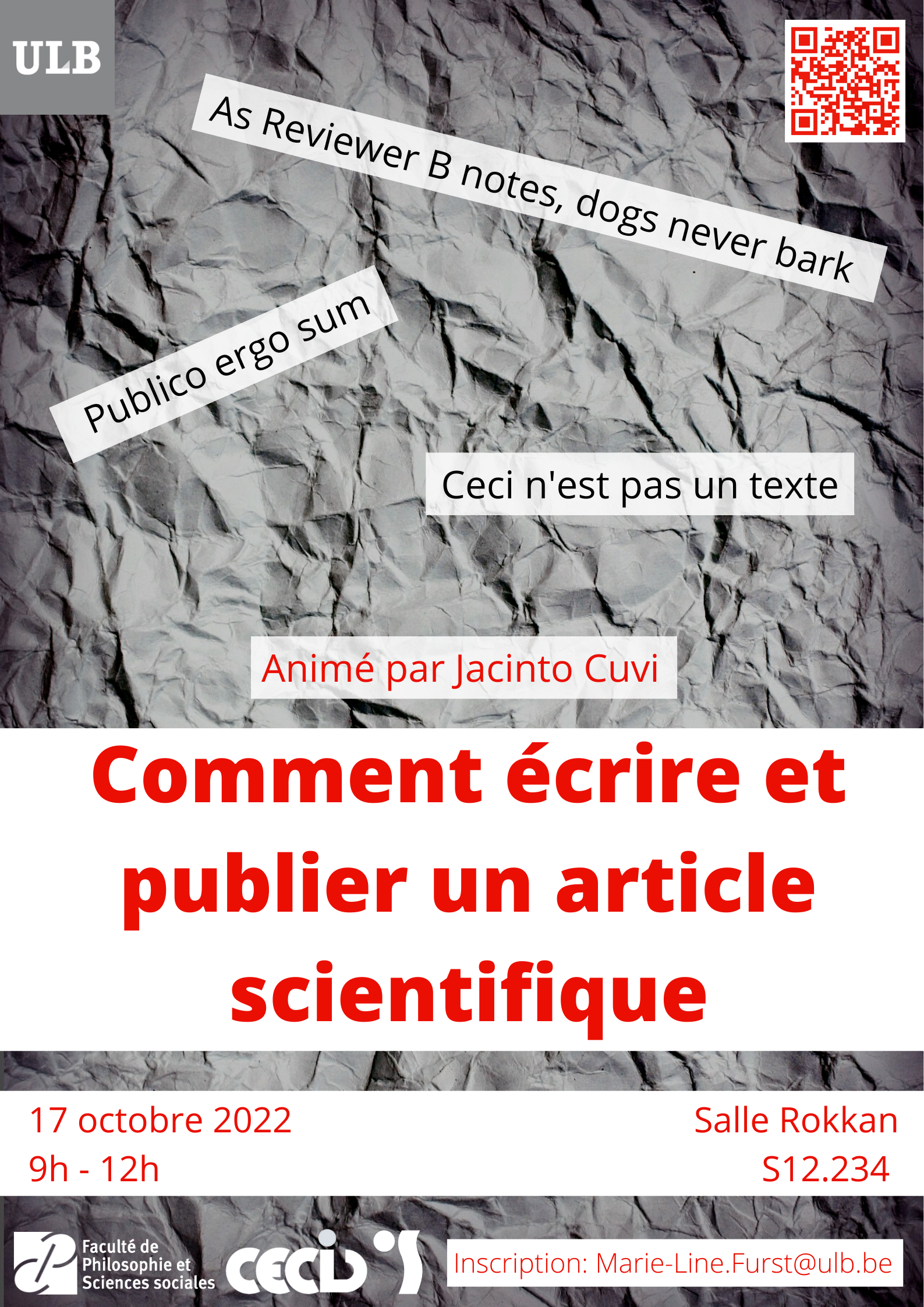 Comment écrire et publier un article scientifiqueAtelier animé par Jacinto Cuvi Visualisez l'affiche |