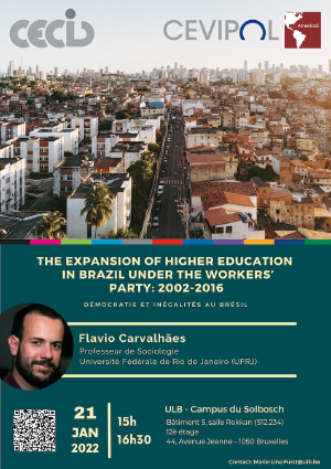 The expansion of higher education in Brazil under the Workers’ Party: 2002-201621 janvierSpeaker : Flavio Carvalhães, Professeur de Sociologie, Université Fédérale de Rio de Janeiro (UFRJ) |