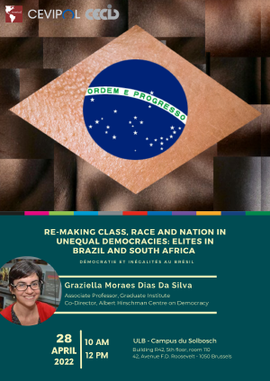 Re-making Class, Race and Nation in Unequal Democracies: Elites in Brazil and South Africa28 avrilCycle de séminaires : Démocratie et Inégalités au Brésil Speaker : Graziella Moraes Dias Da Silva, Associate Professor, Anthropology and Sociology Co-Director, Albert Hirschman Centre on Democracy, Graduate Institute View the poster |